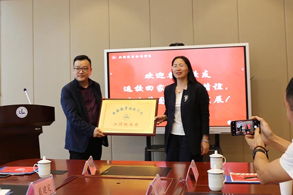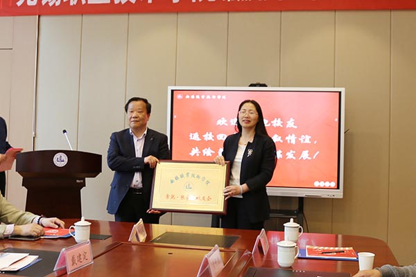 校友办主任储开峰介绍了两地校友会的筹备情况,宣读了两地校友会组织机构组人员名单,杨雪琴副校长为两地校友会授牌并颁发了聘书,无锡校友会吴志波代表地方校友会致了贺词。