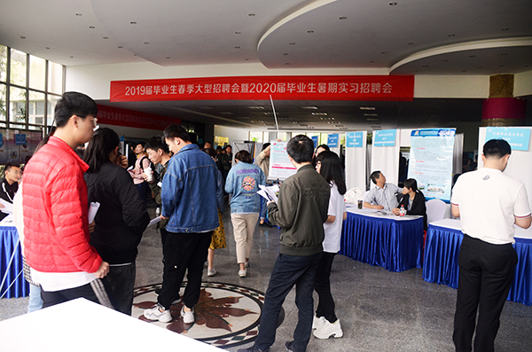 4月20日上午,永利集团2019届毕业生春季大型招聘会暨2020届毕业生暑期实习招聘会在明德楼、博学楼一楼大厅举办,168家企业进场招聘,提供岗位3200多个。
