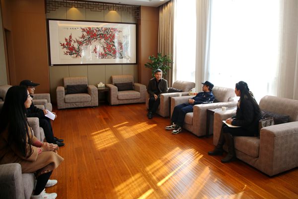 永利集团朱爱胜书记(右三)与检查组成员交流