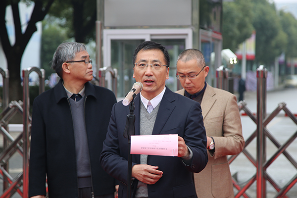 强伟纲副校长主持活动,基建处负责人宋静辉介绍了项目建设情况。龚方红校长对北大门的圆满竣工表示热烈祝贺, 指出北门沿用了永利集团中桥校区大门的样式,是永利集团承前启后、继往开来的象征,也体现了永利集团“严谨治学, 崇尚实践”的校训精神和“唯实”的学校风尚。随后朱爱胜书记宣布北大门正式启用,开启电动门。在绚烂的礼炮中,出席活动的校领导为北门剪彩。