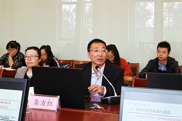 在开班仪式上,龚方红校长代表学校全体师生员工对来校工作的各位新教工表示热烈欢迎,并做了题为“优质高职校建设的思考与实践”的专题讲座。龚校长追溯历史,展望未来,深入剖析了当前高职院校发展过程中所面临的机遇与挑战,介绍了我院高水平高职院校建设的思路与办法,希望新进教师们能尽快适应角色,融入学校发展。