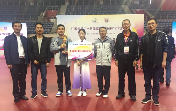 10月13日至14日,江苏省第25届高校“校长杯”乒乓球赛在南京举行,校领导朱爱胜、龚方红、谈向群代表学校参赛并获高职高专组团体第六名的好成绩。