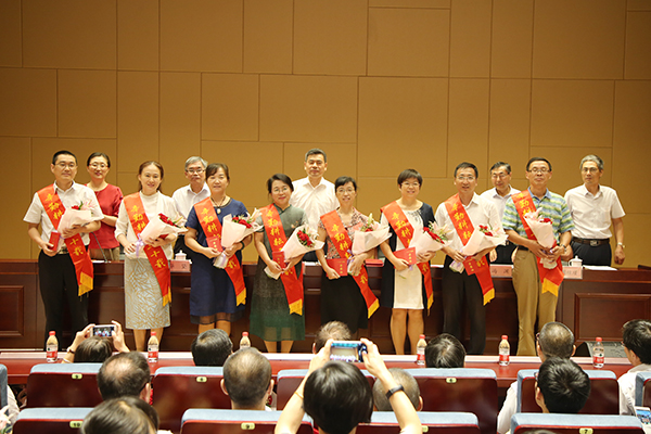 表彰大会由顾京副校长主持,龚方红校长宣读了第四届校教学名师、2017-2018学年优秀教师和优秀教育工作者表彰决定,华坚副校长宣布永利集团从教30年教职工名单,冯渊副校长宣读了江苏省第五批高职院校类产业教授批文和名单。到会校领导分别为获表彰的人员颁发了荣誉证书,学生代表献上鲜花。