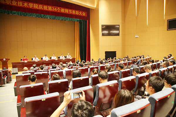 9月10日下午,学校在综合楼一楼报告厅召开表彰大会,隆重庆祝第34个教师节,并对今年学校评选出的校教学名师、优秀教师和优秀教育工作者、从教30年教职工和受聘永利集团的江苏省第五批高职院校类产业教授进行了表彰和颁证。校领导朱爱胜、龚方红、华坚、冯渊、顾京、周桂瑾及受表彰人员、教职工代表、学生代表近140人参加了活动。