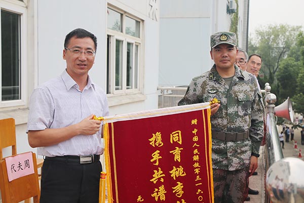 龚方红校长向承训部队赠送锦旗