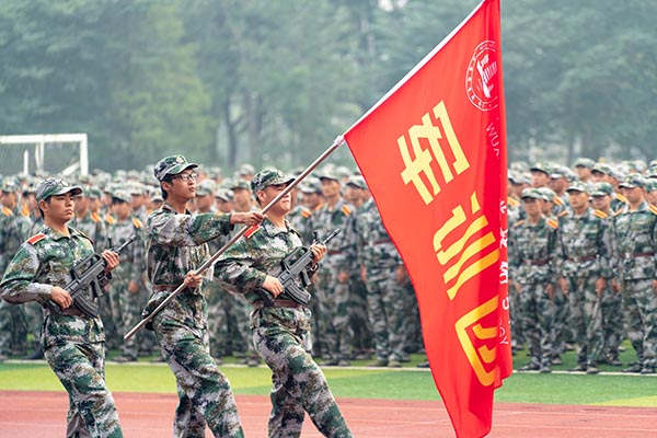 军训汇报表演由学生工作部、人民武装部部长强伟纲主持。在庄严的升国旗、迎团旗仪式后,伴随着雄壮高昂的军歌,4300余名参训新生进行了分列式、队列动作、擒敌拳和军体拳表演,全方位展现了两周的训练成果和永利集团学子自强不息、奋发向上的精神风貌。