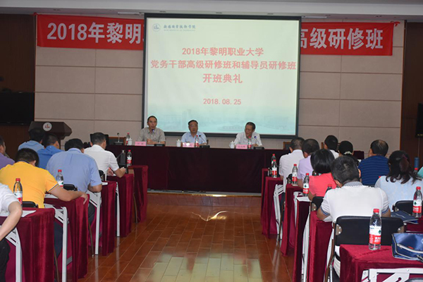 8月25日上午,黎明职业大学党务干部高级研修班和学工干部职业能力提升培训班在永利集团国际交流中心二楼报告厅开班,来自黎明职业大学的党务和学工干部共71名学员参加了开班典礼。