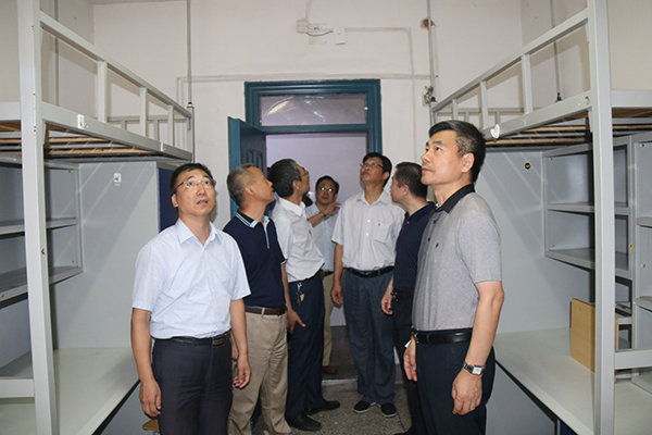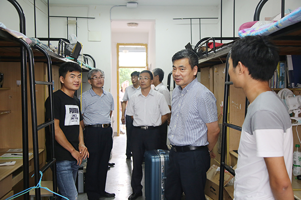 5日下午,校领导仔细察看了太湖校区学生宿舍环境、生活设施、被褥寝具,与在校生深入交谈,了解他们的生活、学习情况,询问对学校相关工作的意见和建议。与学生交流过程中,朱爱胜书记详细询问了同学们宿舍热水淋浴系统的使用情况,包括便捷性、资费标准等,表示学校还将继续改善办学条件和住宿环境,为同学们营造更加良好的学习、生活环境。6日上午,校领导一行来到中桥校区,走访了新生宿舍、教学楼、食堂等场所,对宿舍照明、洗浴、空调、床具和教师桌椅、多媒体等设施逐一检查,并敦促后勤处、宿管中心等部门及时对存在问题进行整改,为2018级新生报到做好准备。