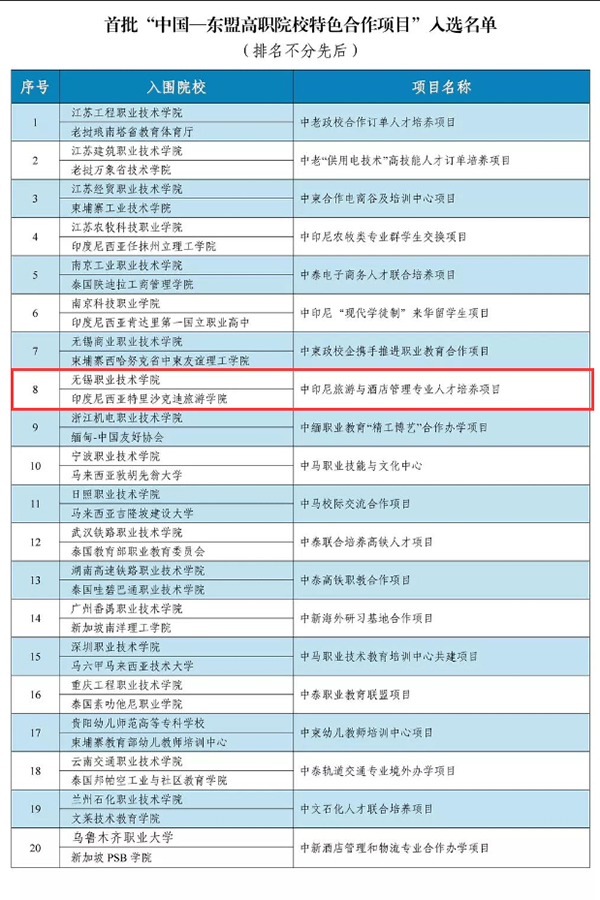 首批“中国-东盟高职院校特色合作项目”入选名单