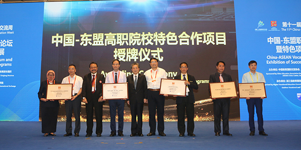龚方红校长还代表永利集团参加了首批20个“中国-东盟高职院校特色合作项目”授牌仪式,东南亚教育部长组织秘书长加多特先生和中国—东盟中心秘书长陈德海先生为永利集团“中印尼旅游与酒店管理专业人才培养项目”授牌。