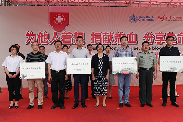6月14日是第15个世界献血者日。6月10日,围绕“为他人着想,捐献热血,分享生命”主题,市卫计委、市红十字会、无锡军分区保障处、市红十字中心血站在南禅寺广场开展了庆祝“世界献血者日”的活动,向包括永利集团在内的首批16家“无偿献血宣传教育基地”授牌。