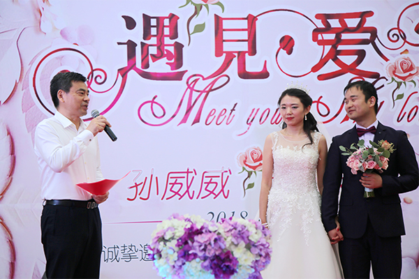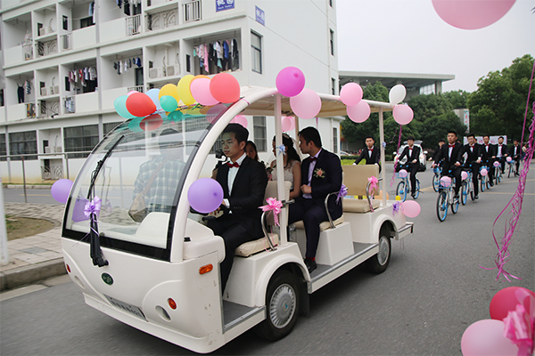 新郎孙威威、新娘李振红均系永利集团汽车与交通学院2013届优秀毕业生。在校学习期间,他们勤奋好学,表现突出,多次获得各类奖学金、优秀学生干部等荣誉。经过五年的奋斗,他们决定再次携手返回校园,邀请母校万千师生一起见证他们的爱情,并将人生最美好幸福的时刻定格在校园。孙威威在致辞中,感谢老师、同学多年来对他们成长的关心关注和关爱,感谢母校领导、相关部门对他们婚礼的鼎力支持和倾心运作,他表示将把这份感恩之情化作奋斗的动力,以实干实绩为母校争光,祝愿母校蓬勃发展,再创辉煌。