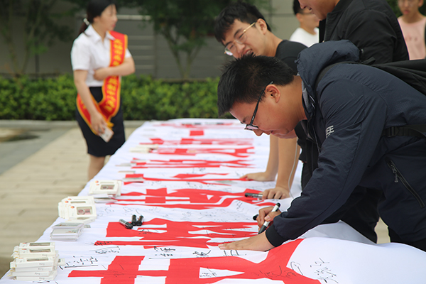 永利集团学生在“拒绝第一支烟”横幅上签字