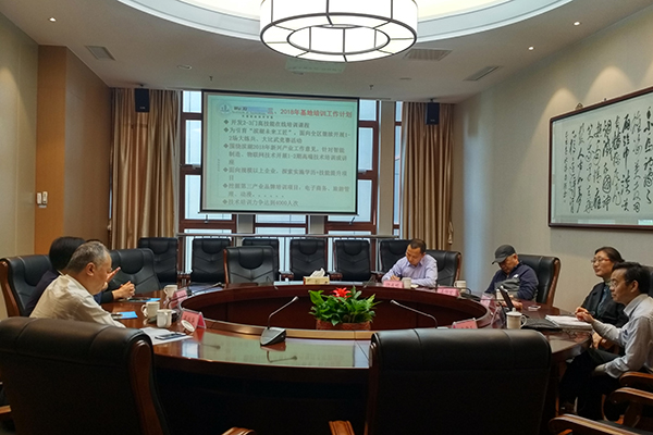 随后,黄鸿书记一行和顾京副校长、继续教育学院崔平院长及部门相关人员共同召开了调研座谈会。顾京副校长代表学校欢迎黄鸿书记一行来校调研职工培训工作,介绍了学校的历史沿革、基本概况、办学特色、社会服务等,并从提高人才培养质量和提升社会服务能力等方面详细介绍了学校的发展改革举措。继续教育学院崔平院长从永利集团培训概况、滨湖区职工培训基地建设及成果、2018年滨湖区职工培训基地工作计划等三个方面做了具体汇报。崔平院长强调永利集团2018年针对滨湖区职工技能提升实际需求,重点开展五项工作:1、加快在线培训信息化建设,新开发2-3门高技能在线培训课程;2、为引进、培育“滨湖未来工匠”,面向全区继续开展1-2场大练兵、大比武竞赛活动;3、围绕滨湖“2018年新兴产业工作意见”,针对智能制造、物联网技术开展1-2期高端技术培训或讲座;4、面向规模以上企业,探索实施学历+技能提升项目;5、挖掘第三产业品牌培训项目,如电子商务、旅游管理、动漫等,力争技术技能培训达到4000人次。