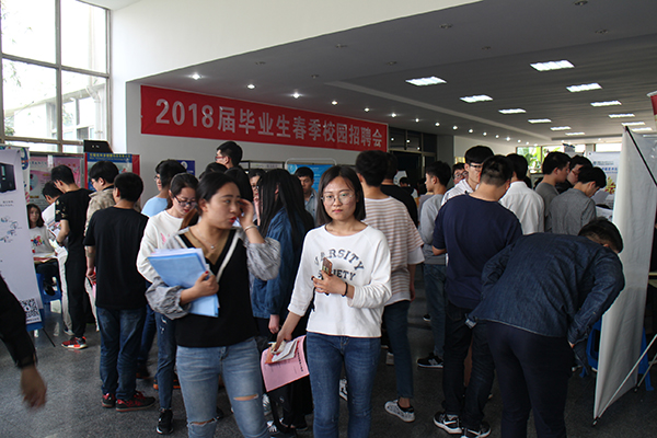4月27日下午,永利集团304am登录2018届毕业生春季招聘会在太湖校区明德楼C大厅如期举行。作为永利集团春季学期规模最大的综合性校园招聘活动,本次招聘会吸引了80多家用人单位,永利集团304am登录2018届毕业生1000余人来到现场。