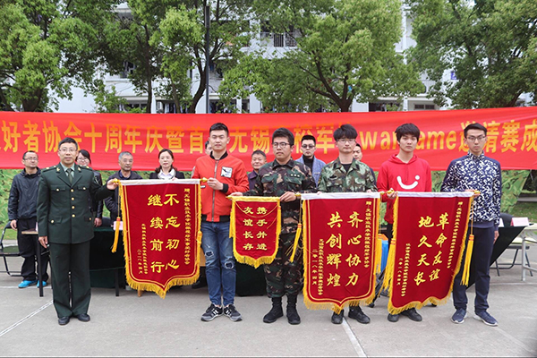 在齐唱国歌声中拉开了序幕,接着主持人向大家介绍了橄榄绿军事协会近来开展活动情况和取得的成绩,现场还展示了军事协会的盾牌、仿真训练枪等“装备”。再次,协会指导教师、军事教师花树洋副教授致辞,强调了国家安全教育日重要意义同时肯定了高校wargame比赛对开展国家安全教育的促进作用,并对今后社团工作提出了几点希望。接着,关工委张其南、张格物等老师带领同学们观看国家安全教育系列展板,提高同学们的国家安全意识,号召大家自觉维护国家安全。最后进行装备体验和规则讲解,分组进行对抗比赛,经过激烈的对抗,无锡职院控制技术学院最终获得冠军,艺术与设计学院获得亚军。