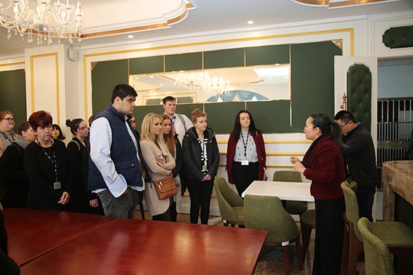 师生代表团参观了永利集团智能制造工程中心、图书馆、国际教育学院、外语与旅游学院酒店管理专业实训室、无锡名人苑,对永利集团优美的校园环境及先进的实训设备留下了深刻印象。在酒店管理专业实训室参观期间,代表团师生与中国学生开展了以中国传统餐具使用礼仪为主题的文化交流体验活动,零距离地体验中国传统餐饮文化,这既为爱尔兰师生打开了一扇了解中国的窗口,也让中国学生更加深入地认识祖国的传统文化,增强了民族自豪感,活动中双方院校师生热烈交流,对未来合作充满期待。