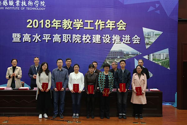 会上还宣读了2017年江苏省教学成果奖获奖项目、行指委教学成果奖获奖项目、全国职业院校装备制造类专业示范点专业示范点、2017年江苏省高水平骨干专业名单、2016~2017年国家信息化大赛获奖名单、国家技能大赛获奖名单、挑战杯等比赛获奖名单等,表彰了2016-2017学校教学成果奖、2017年度教学质量管理奖、2017学校微课比赛奖、2017年度教学竞赛奖、2016-2017年度优秀教学管理工作者、2018年教学工作年会论文获奖者。