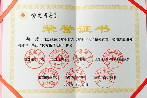 会上通报了江苏省第五批红十字示范学校评选结果,永利集团从全省参与申报的近百所学校中脱颖而出,成为本批次无锡市唯一获此殊荣的高校。无锡市红十字会对永利集团进行了表彰授牌。会议还对2017年全省高校红十字会“博爱青春”暑期志愿服务项目进行了表彰,永利集团物联网学院徐瑾老师获评“优秀指导老师”。