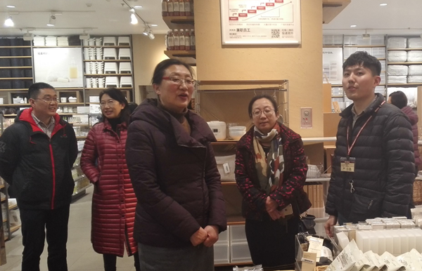 顾京副校长在无印良品海岸城门店与店长亲切交流了解学生实习情况