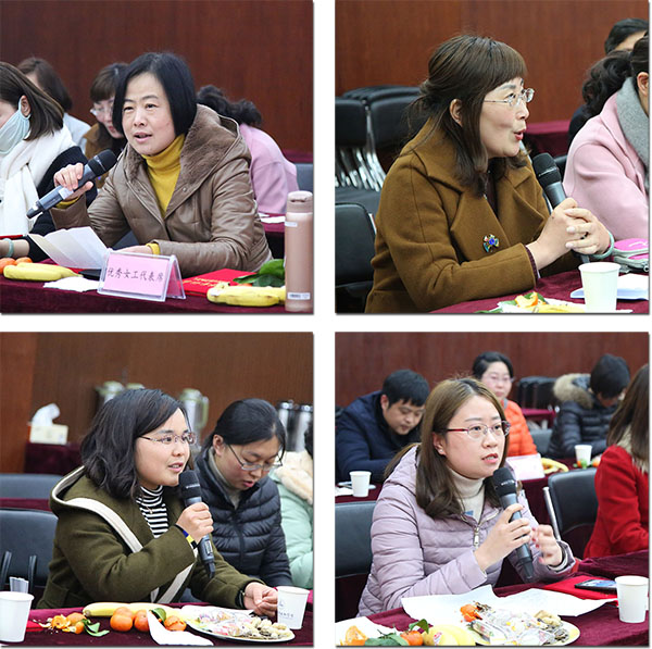 座谈会由校工会负责人沈明南主持。会上表彰了2017年度校级工会积极分子和优秀女教工,余臻蔚、张玲、张国芬、李萍、刁春娟、马融、章樱樱、赵后起、宋佳娜、吕伟文、吴香菊、屈海香、周洁、张佳丽、盖虹、林姣姣、罗颖、王颖、程镭鳕、唐羚、李湘、张路遥、郝琦等23位老师被评为学校2017年度优秀女教工。座谈交流中,赵后起、邵琪珺、赵焕焕、李湘等女教工代表先后发言,围绕学校工作、家庭生活和个人发展等方面畅谈了自己的体会,表示将立足岗位积极工作,为学校发展建功立业;努力扮演好家庭和社会角色,做新时代的魅力女性。