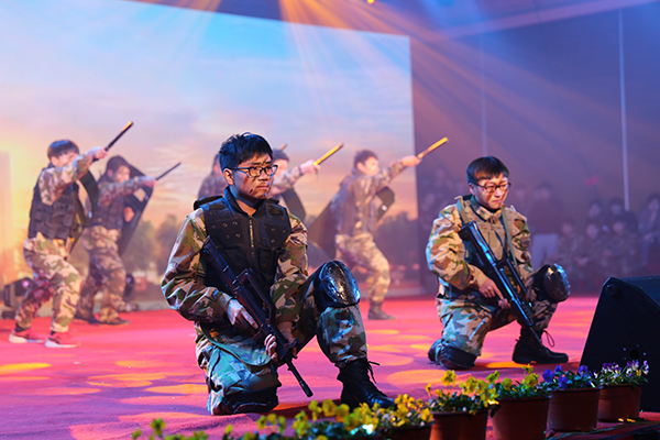 演出之前,校党委书记朱爱胜代表学校党委和行政向全校师生员工致新年贺词。朱爱胜书记指出,即将过去的2017年,学校党委、行政团结带领全校师生,紧紧围绕建设高水平智能制造卓越校目标,全面实施学校“十三五”发展规划,聚焦立德树人,聚力产教融合,聚力人才强校,聚力服务育人,聚力对外开放,聚力全面从严治党,在人才培养、科技服务、师资队伍建设、学生工作、招生就业、国际合作、党建与思想政治工作等方面取得了新成绩、新进展。2018年是永利集团事业发展重要的一年,我们要以党的十九大和习近平总书记系列重要讲话精神为指引,立足学校发展新态势,坚持走以质量提升为核心的内涵式发展道路,希望全体师生继续发扬学校优良传统,瞄准新目标,明确新思路,采取新措施,为学校发展而努力奋斗。