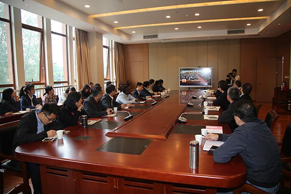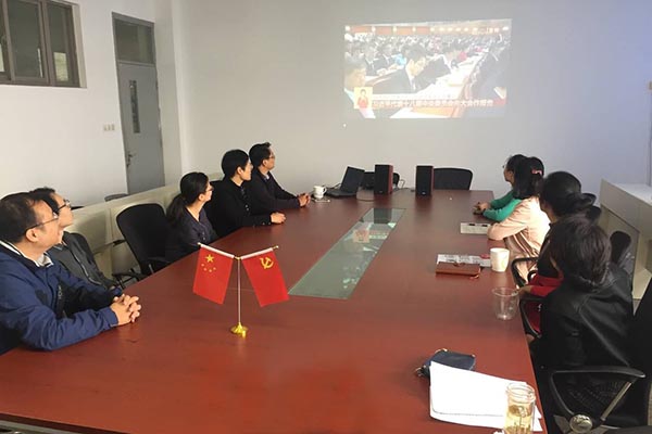 教职员工在综合楼辅楼会议室收看十九大开幕