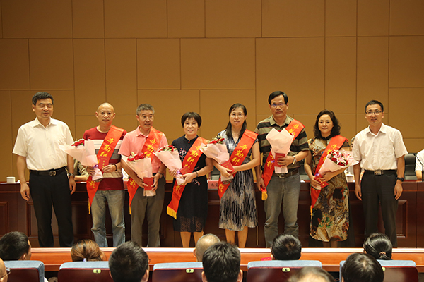 表彰大会由副校长顾京主持,龚方红校长宣读了2016-2017学年优秀教师和优秀教育工作者表彰决定、第三届校级教学名师表彰决定、2017年度“学生最喜爱的教师”评选结果、2016年度学校教学质量管理奖评选结果。曹秀中等25位老师被评为2016-2017年度优秀教师,徐海楠等18位同志被评为优秀教育工作者;体育部主任华宝元老师被评为第三届校级教学名师;曹宏等10位老师获评2017年度“学生最喜爱的教师”称号;控制技术学院、基础部和财经学院获2016年度学校教学质量管理奖。