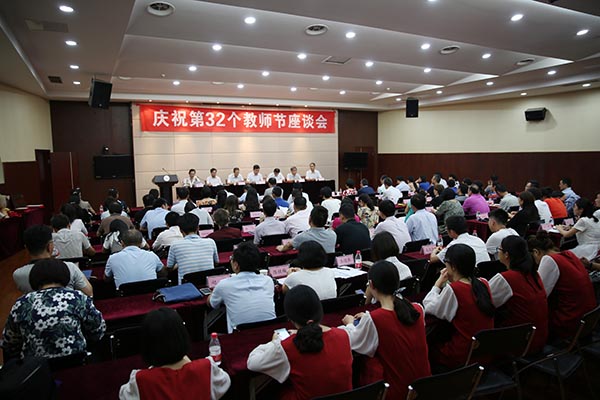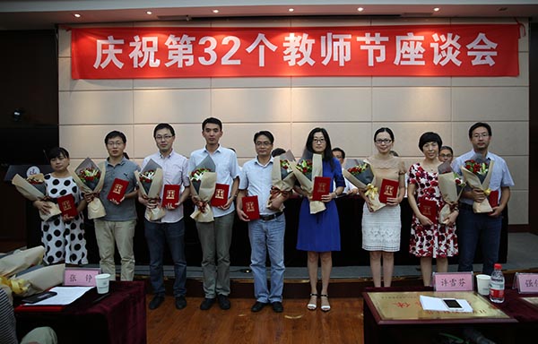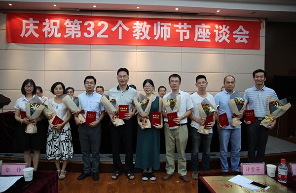 9月9日下午,在第32个教师节来临之前,永利集团在国际交流中心二楼报告厅召开座谈会,庆祝教职工自己的节日,表彰先进集体和优秀个人。校领导朱爱胜、龚方红、谈向群、华坚、冯渊、顾京、周桂瑾,受表彰人员、教职工代表和学生代表等近百人参加了座谈会。