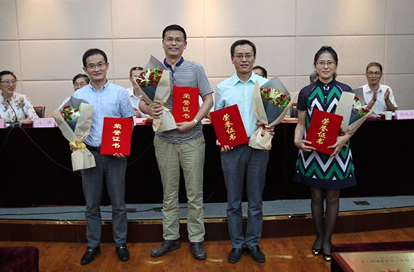 校领导为获表彰的先进集体和优秀个人颁发了荣誉证书。谈向群副书记宣读了胡全裕等15名获三十年教龄老师名单,朱爱胜书记和龚方红校长为他们颁发了证书,并佩戴绶带。学生代表肖玥向全校教职工送上了浓浓的节日祝福,教师代表张铮、王志萍、曹小兵、赵健先后发言,他们结合自身工作和生活实际,从不同的角度表达了对教师的职业认同和高度敬业精神,畅谈了在教育教学工作中的体会和感悟,同时表示在社会发展新常态下,作为教师,必须要调整好自己的心态,保持一份清醒和沉静,扬师德、树师风、铸师魂。这样才无愧于时代赋予我们的使命。