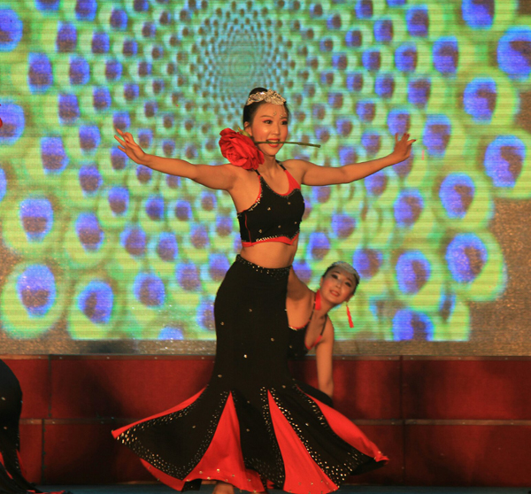 晚会以“五月的鲜花·理想点亮未来”为主题,结合纪念世界反法西斯战争胜利70周年的元素,以丰富的艺术形式为观众呈现了一场文化艺术活动的饕鬄盛宴。演出共包括院部大联唱、啦啦操、器乐合奏、歌舞表演、相声等13个节目。五四青年们以歌舞、朗诵的形式歌颂青春、赞美和平。演出精彩纷呈,掌声此起彼伏,现场气氛热烈,章樱樱老师编排的群舞《女儿花》和孟美蓉老师编排的群舞《红色英雄》将晚会氛围推向最高潮。