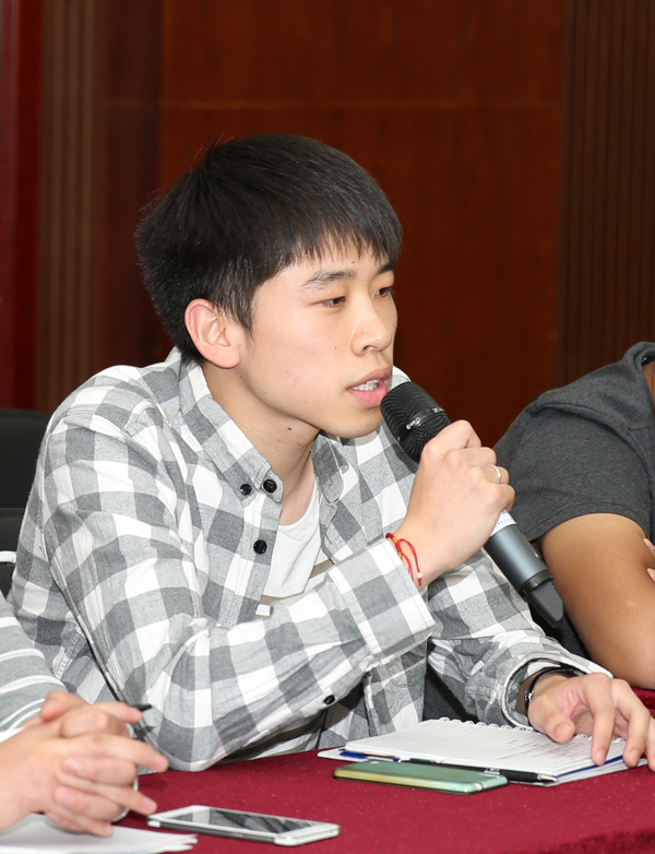 会议由学生处处长强伟纲主持。他鼓励学生积极发言,讲心中所想,提心中所惑。所有到场学生依次发言,他们就学生服务、课程安排、考研深造、社团活动、后勤保障、就业创业等方面提出了诸多意见与建议。代表们发言踊跃、直言不讳、现场气氛热烈。