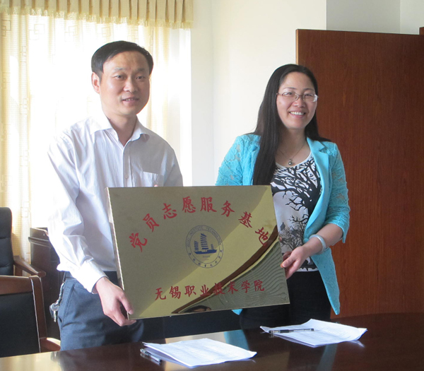 校组织部部长杨雪琴与社区居委会主任邵国丰共同为“永利集团304am登录党员志愿服务基地”揭牌