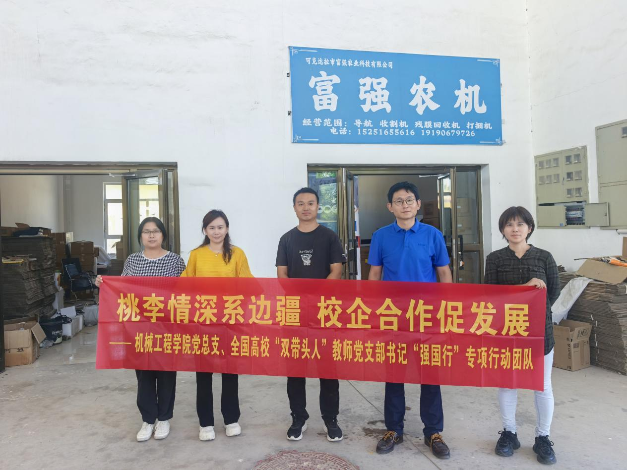 8月30日,团队赴可克达拉市富强农业科技有限公司,看望机制11632班校友焦前进,深入了解其在边疆的工作与生活情况。焦前进代理无锡卡尔曼导航技术有限公司的农机导航系统,借助北斗定位与传感器技术,可将播种行距误差控制在3厘米内,大幅提升了新疆地区农业生产的智能化与精细化水平。走访期间,焦前进带领团队实地观摩了田间智能化收割作业,并详细介绍了该技术的应用情况及其对当地农业发展的推动作用。焦前进表示,母校的培养与技术支持为其创业提供了坚实基础,言语中既充满对母校的感激之情,也体现出扎根边疆、以技术赋能农业的坚定信念与自豪感。