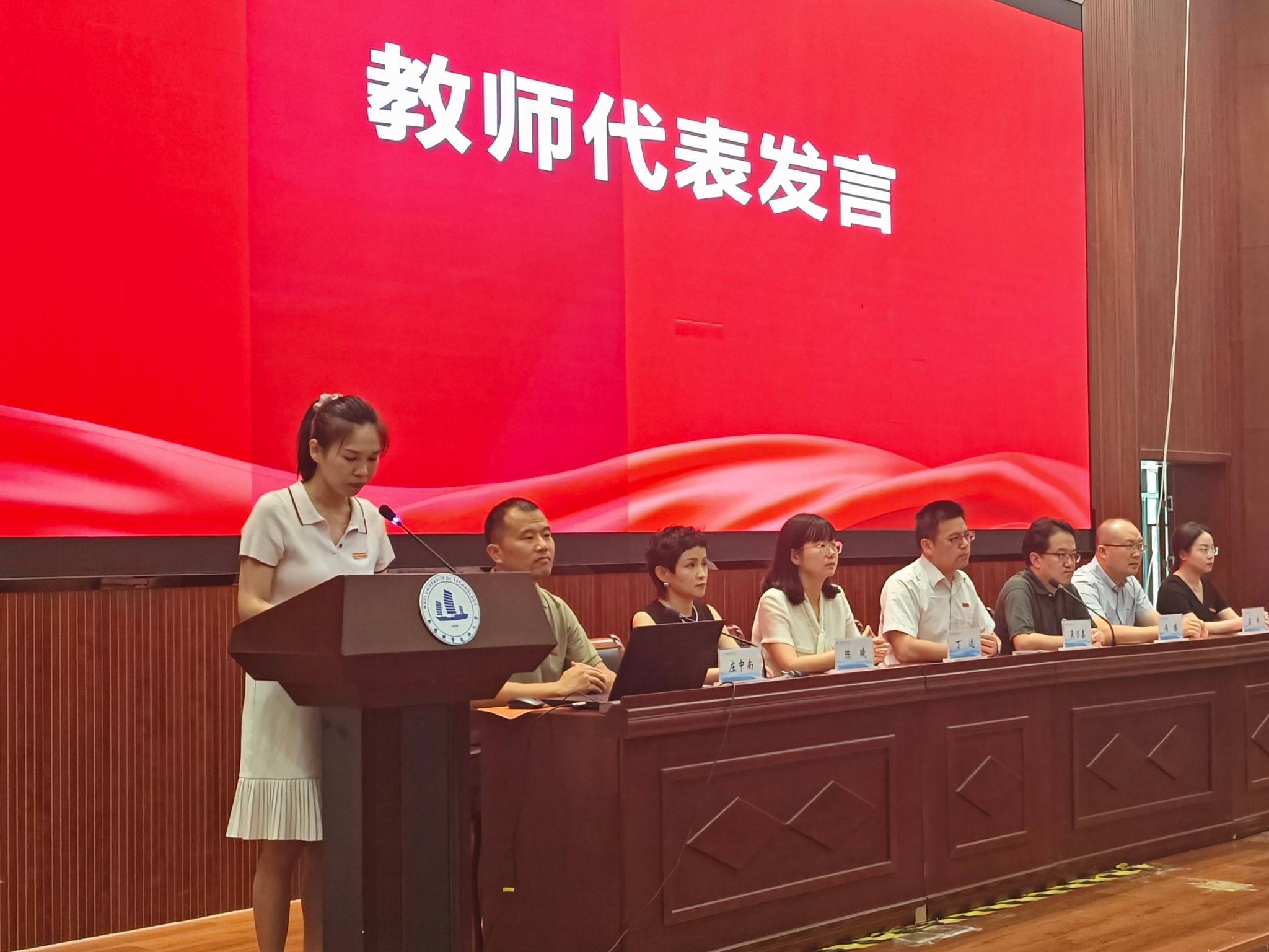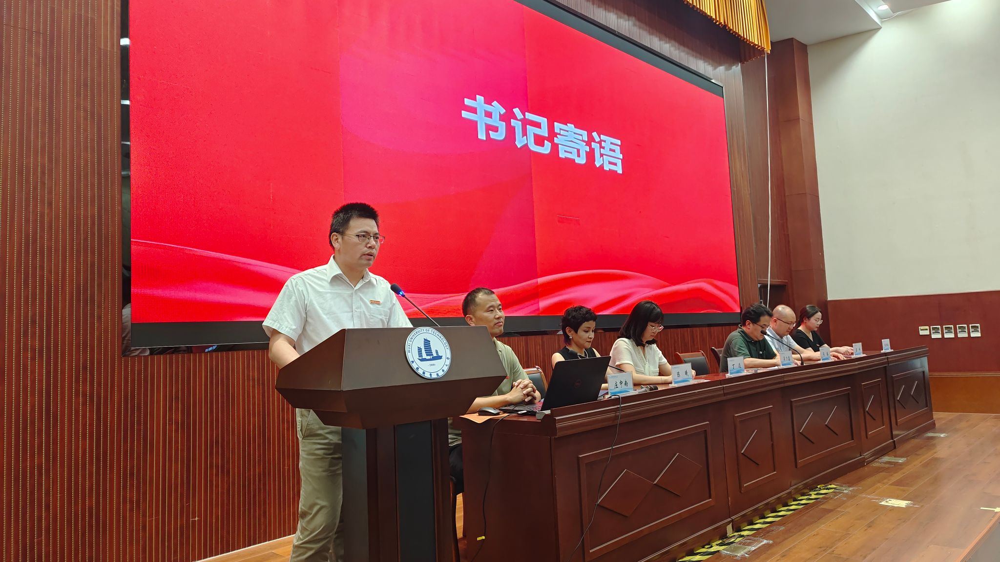 教师代表、智慧旅游技术应用专业教师牛文蕾,老生代表、酒店管理24322班侯绪鹏,新生代表、酒店管理25321班孙铭蔚先后发言。随后,党总支书记吴乃鑫为2025级新生班主任颁发聘书。