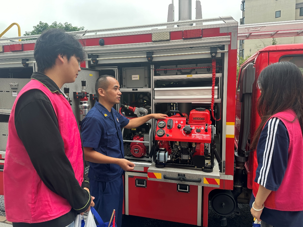 活动包括应急物资展示、应急技能教学、互动体验等多个环节。向日葵义工站的学生们在现场协助工作人员布置展位、引导居民参与体验,并在“应急救援知识问答”“模拟灭火体验”“创伤包扎练习”等互动环节中发挥积极作用,展现了良好的组织协调能力和志愿服务精神。