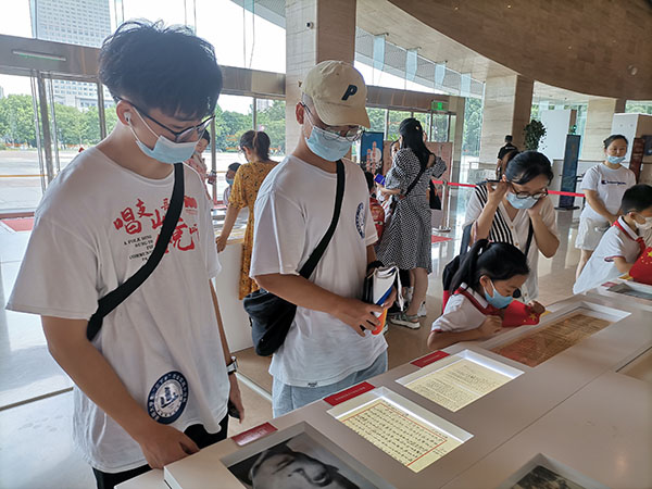 在无锡博物院,“展红色书信 传革命精神”无锡博物院庆祝中国共产党成立100周年特展正在一楼大厅展出,分为“先烈遗墨照初心”和“致敬最可爱的人”两个专题进行展出。队员们有幸看到了大量珍贵的红色书信,红色书信是革命文化的重要载体,一封封书信、一段段往事,是一个时代的红色印记,反映了中国革命与建设的伟大进程与时代风貌。