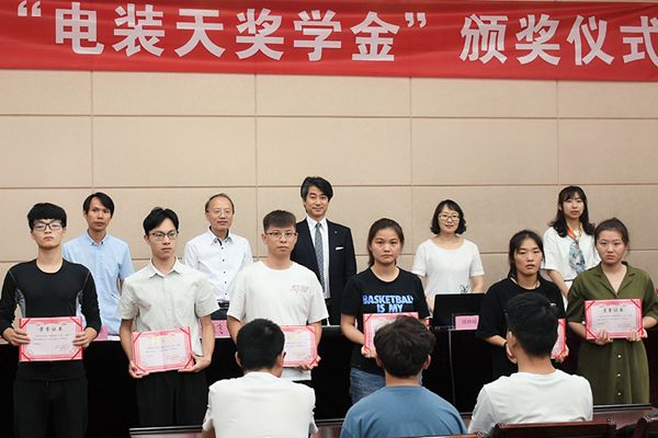 在颁奖仪式上,周陆飞书记代表学院致欢迎词,对电装天电子(无锡)有限公司的热心资助永利集团优秀学子的善行义举表示感谢,要求获奖同学们继续加强学习,提升专业技能,强化责任意识,懂得感恩,努力成为对社会有用的人。电装天电子(无锡)有限公司木下茂一总经理表示公司是一家有着强烈社会责任意识的企业,愿意积极资助优秀学生更好地完成学业,也希望有更多优秀的学生能加入电装天无锡公司这个大家庭,共享公司发展的成果。徐锋副书记代表学院宣读了2019年度电装天奖学金的表彰决定,学院和公司领导共同向获奖学生颁发了荣誉证书。之后,周峥嵘经理介绍了公司的主营业务和工作生活环境,鼓励同学积极选择公司作为自己的发展平台。学院2014届毕业生、电装天公司员工辛梦炜向在场的学习学妹们分享了自己在企业5年来的工作经历。获奖学生狄奕成代表全体受资助的同学对企业和学校为学生的成长发展所付出的努力表示感谢,自己会继续奋发学习,以优异的成绩回报社会。
