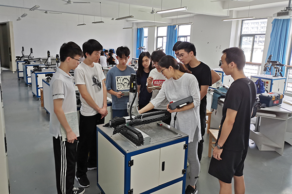 通过走访无锡职院智能制造工程中心和电气自动化技术专业实训实验室,来访同学了解各实验实训室在专业教学与学生能力培养过程中的作用,听取专家解读与分析行业中的智能制造关键技术与应用、数字化工厂的顶层设计、智能制造对电气自动化技术专业毕业生的能力与技能需求;针对智能制造关键技术——AGV小车与工业机器人的应用,进行项目式专项训练,提升技能的综合应用能力。两校同专业同学间也进行了在校学习与生活、创新设计、技能竞赛、学生社团活动组织等方面的交流。
