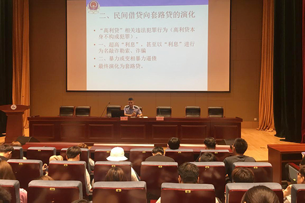 近年来,高校“套路贷”、“校园贷”事件而引发的校园案件时有发生,为增强在校学生的金融风险防范意识,树立理性科学的消费观,6月21日下午,保卫处特邀请无锡经侦支队副大队长武伟警官在综合楼辅楼一楼报告厅开展了防范非法集资、套路贷、校园贷知识专题讲座。