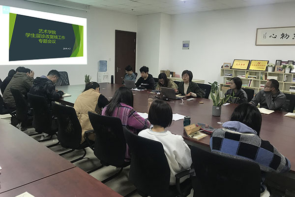 为推进分院内部质量保证体系的诊断与改进工作,更好迎接诊改复核,4月2日下午,艺术与设计学院在综合楼215会议室召开学生层诊改复核工作动员会,党总支书记罗嘉军、学工办辅导员、全体班主任以及学生代表参加会议。