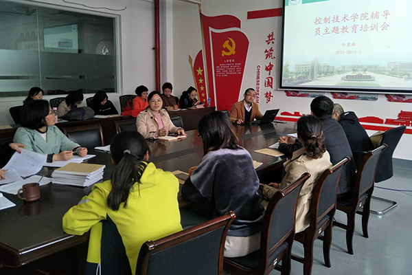为深入学习宣传贯彻党的十九大精神,将大学生思想政治教育工作落细落实,3月19日下午,控制技术学院在工业中心B-409会议室面向分院学工队伍开展了主题教育培训会。