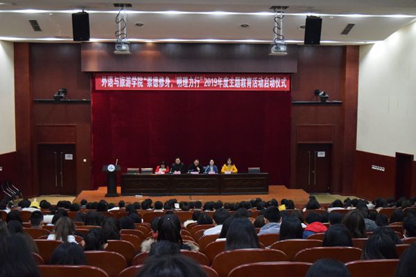 3月5日下午,外语与旅游学院“崇德修身,明理力行”2019年度主题教育活动启动仪式在国际交流中心一楼报告厅举行,分院党总支书记江铭及学工办负责人、全体辅导员、学生代表参加了活动。