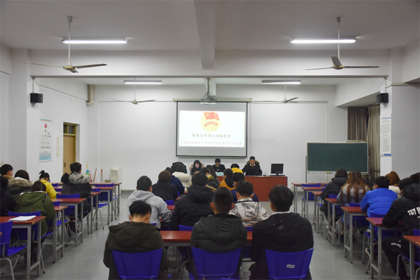 为进一步引导广大青年学生深入学习贯彻习近平新时代中国特色社会主义思想和团十八大会议精神,帮助青年学生培育和践行社会主义核心价值观,12月10日晚6点,物联网技术学院分团委在图C-401举办了以“诵读学传”为主题的素养公开课。分院大一、大二年级各班团支书,参加并学习了本次素养公开课。