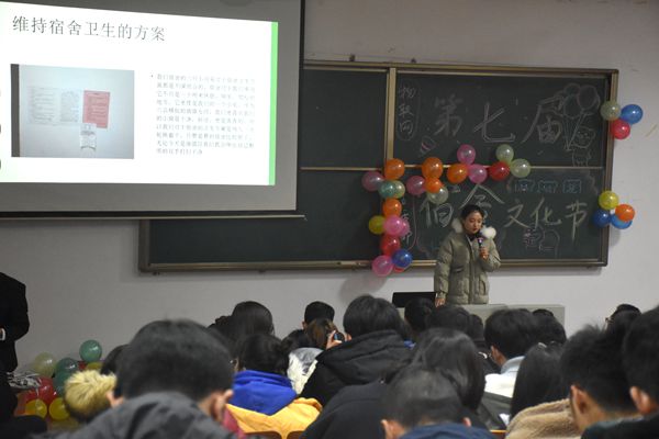 前期评选出的优秀宿舍以PPT的形式,围绕卫生整洁、美化创新、成员整体风貌三个方面,对各自“宿舍文化”进行解说和展示,一个个宿舍焕发着生机与活力,传达着青春与激情,营造了温馨之家。期间,“欢乐竞猜”等互动游戏,更是加深了同学们对“寝室文化”的理解。良好的宿舍文化氛围、积极向上的精神面貌都在这里体现得淋漓尽致。最终,经过嘉宾评议,评选出了文明宿舍一、二、三等奖。