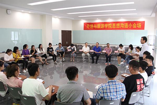 6月5日下午,外语与旅游学院在国教504举行“诚信与大学生成长成才”思想沟通小会场活动。外语与旅游学院党总支书记江铭,校关工委张其南教授,校学工处大学生事务中心主任丁远,外语与旅游学院的曹成志教授、林姣姣、罗启宝及学生代表30余人参加了活动。罗启宝主持本次活动。
