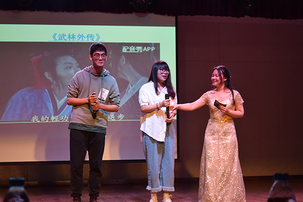 此次活动面向全校学生,同学们根据自己的需要对配音视频原音进行改编与诠释。参赛选手依据抽签的先后顺序进行比赛,共分为四组。配音题材丰富,包含国内影视剧、动画片、国外经典电影等。多种多样的语言,各式各样的角色在参赛选手的完美演绎下,获得了全场观众的阵阵掌声。其中,以家乡方言配音的环节更是将此次活动推向了高潮。选手们脑洞大开,创意十足,比赛现场笑声不断。在经过了激烈角逐后,一组选手吴砚泽和三组选手姚文鑫分别凭借对《奇幻森林》中老虎、《霹雳布袋戏》中小四这两个角色的完美演绎击败其他选手,摘得桂冠。最后,活动在精彩的趣味魔术表演中渐进尾声。