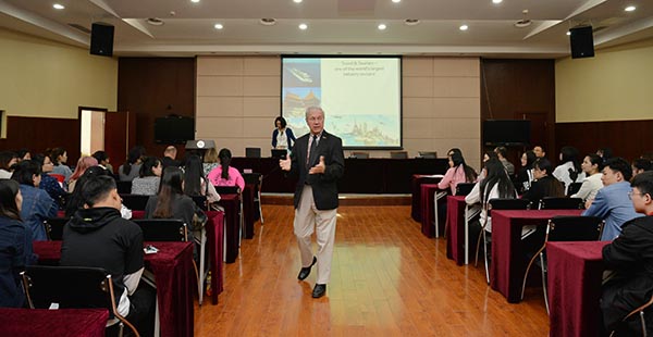 杜靖德教授以“客户服务与酒店旅游业入门”为主题,为酒店管理专业师生进行课堂教学演示,他风趣幽默、活泼开朗,并积极邀请学生们进行课堂讨论和互动,令在场观摩的教师们受益匪浅。杜靖德教授有关如何创造出卓越的对客服务、酒店行业所需的技能体系以及“The Extra Degree”(“增加一度”)成就卓越人生的哲理故事等教学内容,也给师生们以启迪。