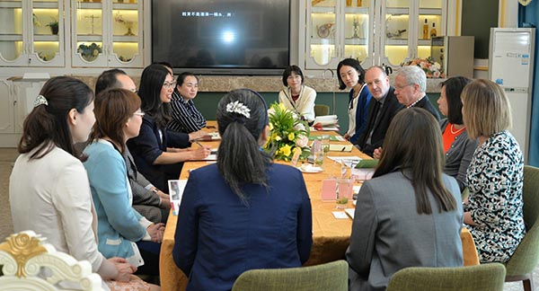 4月18日上午,美国万礼豪程项目总监董佳、首席资深学术顾问圣地亚哥州立大学教授Gene Lamke(杜靖德)、项目传讯总监兼教学顾问Linda Roundtree(袁诗琳)等一行6人来外语与旅游学院交流访问。
