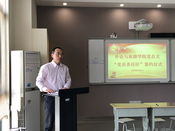4月3日下午,外语与旅游院党总支召开党员大会,开展“党员责任区”签约活动。